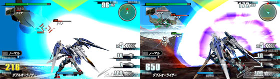 特殊射撃で拡散メガ粒子砲のゼロ距離発射の追加攻撃へと派生させることができる。