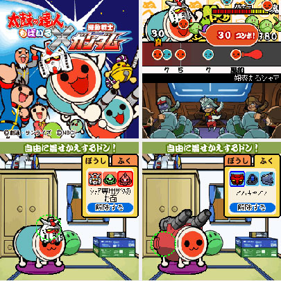 服や帽子を着せ替えて「和田どん」の見た目を変えられる「どんの部屋」で、ガンダムのお面やモビルスーツなどを装着させることができます。アイテムを装着した状態で和太鼓を演奏し、これまでとは違った雰囲気の「太鼓の達人」を楽しむことができます。