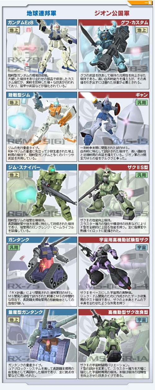 また、『ギャン』や『ザクIIS型』など、第1クールでは開発できなかった機体が4体追加され、合計10機種の開発が可能となる。(※各機体の開発 可能時期は、技術レベルや所属陣営によって異なる。)