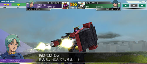 颯爽とエルメスで駆けつけたかと思いきや敵機をいきなり撃破、 窮地に現れた珍しい射撃隊長に、我が軍は大いに盛り上がった。 ちなみに顔グラフィックは親父だが、中の人はなんと10代の学生さん。 キシリア様、ジオンの学徒兵はここまで進化しました!