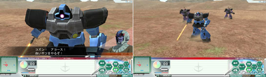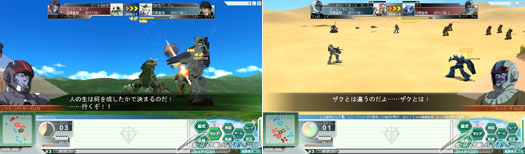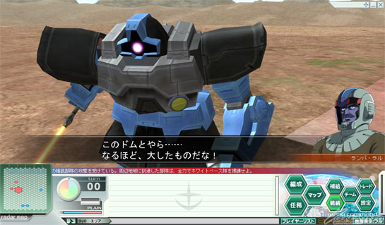 ▲「東南アジア競合任務」でジオン軍が勝利し、「ランバ・ラル競合任務」で連邦軍が勝利した場合は「Cルート (IFルート2)」となり、ホワイトベース隊はドムの補給を受けたランバ・ラル、コズン、アコースの「ランバ・ラル隊」と戦うことになる。