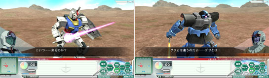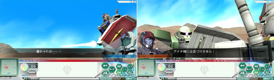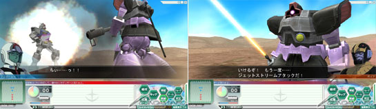 ▲「東南アジア競合任務」で連邦軍が勝利した場合は「Aルート(原作)」となる。『ホワイトベース隊 vs 黒い三連星』の戦いとなり、アムロ、カイ、ハヤトはガイア、マッシュ、オルテガと戦うことに。