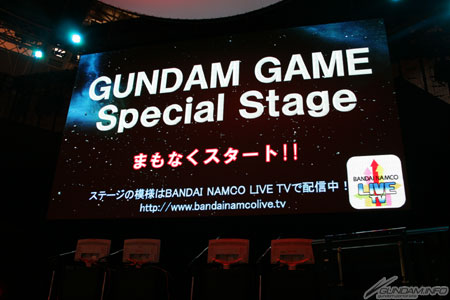 東京ゲームショウ2011のバンダイナムコゲームスブースでは、最新ガンダムタイトルを紹介する「ガンダムゲームスペシャルステージ」が9月15日にブース内特設ステージにて開催された。