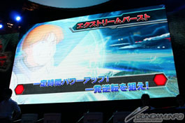 ステージではPVがお披露目され、PS3版ではブーストダッシュやステップを操ってコンボを繰り出す「エクストリームアクション」や、一定時間パワーアップする「エクストリームバースト」などのアーケード版でお馴染みの機能に加え、様々な状況のミッションが展開される「トライアルミッション」や、全国のプレイヤーとの通信対戦が楽しめる「オンラインバトル」といった、家庭用ならではのオリジナル要素が搭載されることが発表された。