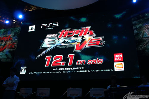 最初に紹介されたタイトルは、12月1日発売予定のPS3「機動戦士ガンダム EXTREME VS.」。アーケードで人気の「ガンダムVS.」シリーズ最新作が、満を持して家庭用ゲーム機で登場ということで、非常に注目度の高いタイトルだ。