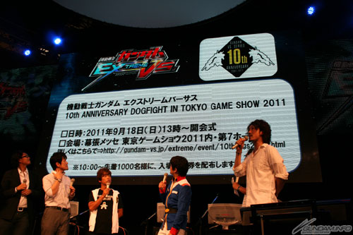 最後に「東京ゲームショウ2011」最終日となる9月18日に、幕張メッセ・第7ホールの特設ステージにて、アーケード版「EXTREME VS.」のオフィシャル大会「機動戦士ガンダム エクストリームバーサス 10th ANNIVERSARY DOGFIGHT IN TOKYO GAME SHOW 2011」が開催されることが告知された。