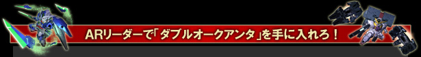 下にある「ARカード」を画面に映してソフト内の「コードリーダー」で読み取ると、『劇場版 機動戦士ガンダム00 -A wakening of the Trailblazer-』の主役機