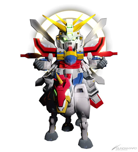 『機動武闘伝Gガンダム』に登場するモビルホース「風雲再起」にゴッドガンダムが騎乗した機体。2種類のスキルはいずれも発動させやすく、なおかつ、戦闘能力を格段に高めてくれるので、近接格闘型の機体としては非常に扱いやすいのが特徴。