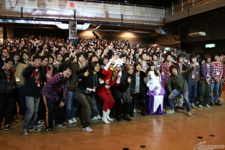 大会恒例の記念写真は、古谷 徹氏、鵜島仁文氏、椿姫彩菜さん、ぬまっち氏ら出演陣と入場者全員で撮影。記念写真は帰りにもらえるという嬉しいサービスも。