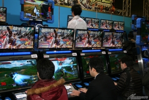 「機動戦士ガンダム エクストリームバーサス フルブースト」のコーナーでは、話題作をいち早くプレイしようと多くの人が列を成しており、その注目度の高さがうかがえた。