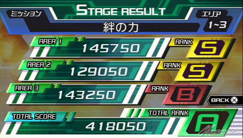 ▲ステージは、いくつかのエリアに分かれており、エリアごとに「ランク評価(S~D)」がされ、全エリアをクリアすると、そのステージでの「総合ランク評価」が表示される。Sランククリアを目指してチャレンジしよう!