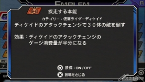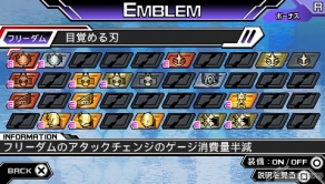 ▲ステージのランク評価や、アタックチェンジで倒した敵の数など、様々な条件をクリアすることでエンブレムを手に入れることができる。
