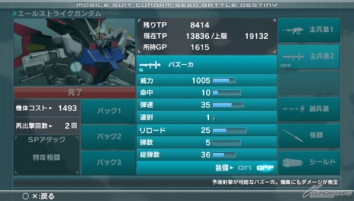ガンダムタイプには、ゲージがなくなるまで実弾を無効化するフェイズシフト装甲などを持つ機体も多いので、実弾武装をOFFにして再出撃回数を増やそう。