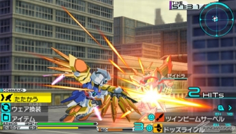 「クロスプレイミッション」は、アドホックを利用して最大3人でのミッションの協力、対戦プレイを楽しむことができるモード。このモードには、ストーリーパートとは違いレベルの概念がなく、強くなるためには「MSの入手」、「MSの強化」、「武器熟練度のUP」を行う必要がある。