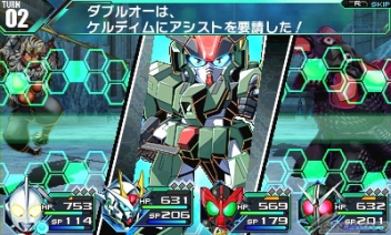 本作は「ガンダム」、「ウルトラマン」、「仮面ライダー」シリーズに登場する総勢15キャラの中から、好きな4人でパーティを編成してダンジョンを攻略するヒーローRPG。新旧ヒーローたちを育てて数々の技を自由に使いながら、派手な戦闘が楽しめる遊び応え抜群の作品だ。