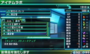 アイテムは素材と合成することで、5回までその性能を強化することができ、強化されたアイテムを装備することで、キャラクターの能力がアップする。