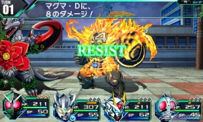 マグマ・ドーパントに耐性のある「火属性」攻撃をすると、「RESIST」が表示され通常以下のダメージとなる。