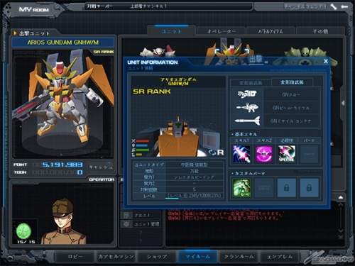 ユニット情報の表示画面では、新たに変形(武装変更)後の搭載武器やステータス、装着中のカスタムパーツが一目で分かるようになる。