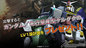 ① 期間中に出撃すると、「ガンダム LV1」と「先行量産型ゲルググ LV1」の完成設計図をプレゼント!