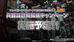 MS・兵装・カスタムパーツの設計図増加量が1.5倍!