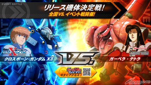 今回リリースを争うのは「クロスボーン・ガンダムX3」と、「ガーベラ・テトラ」の2機体で、期間中により多くのGPを獲得した勢力の機体が先にリリースされる。