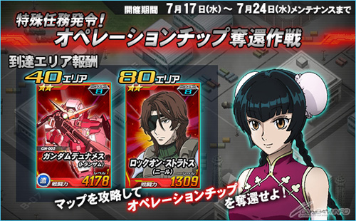 本日から7月24日(水)までの期間限定で開催される特殊任務「オペレーションチップ奪還作戦」では、開催期間中に「特殊任務マップ」に登場する強力な敵を倒すことで「オペレーションチップ」を獲得することができる。