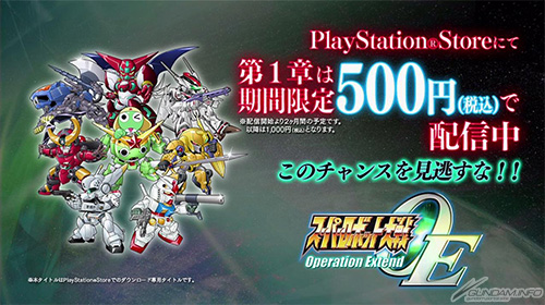 「スーパーロボット大戦Operation Extend」の第1章は、約2ヶ月間の期間限定価格となる500円(税込)で好評配信中。あわせて全8章パック、およびダウンロードカード版も各5,980円(税込)で好評発売中だ。