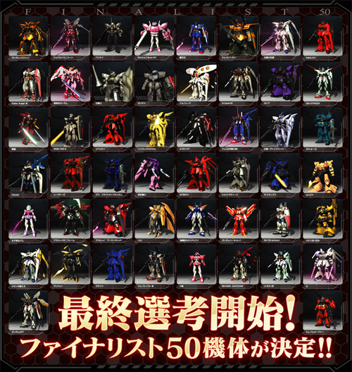 好評放送中の『ガンダムビルドファイターズ』と連動して開催中の「ガンダムビルドファイターズ オリジナルモビルスーツ選手権」。その「ガンダムブレイカーコース」の最終選考に残ったファイナリスト50機体が、ガンダムゲーム公式ポータルサイト「ガンダムパーフェクトゲームス」にて本日公開された。