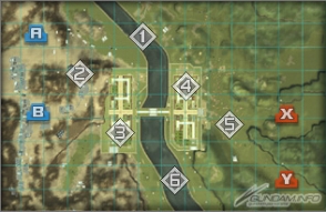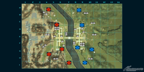対岸へ移動するには、市街地中央に存在する唯一の橋を渡るか川を突破するしかないが、川沿いには防衛施設として固定砲台が設置されており、進攻ルートの選択が重要となる。