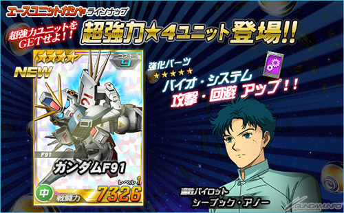 さらに、エースユニットガシャには超強力ユニット「★4 ガンダムF91」が新たに追加される。