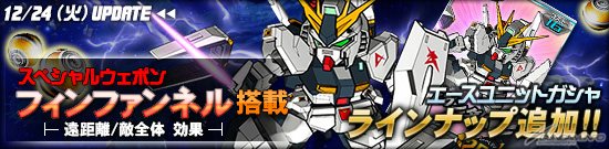 同じく本日よりエースユニットガシャに、スペシャルウェポンを持つ強力なユニット「★3 νガンダム」が追加された。敵全体を攻撃する「フィンファンネル」の威力をぜひその目で確かめてほしい。