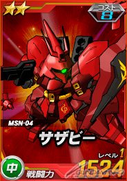 ▲(左)「アムロ搭乗νガンダム」に対し3倍の攻撃力を発揮する「★2 サザビー」