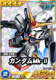本日のアップデートでエースユニットガシャに「★4 ガンダムMk-II」が追加された。同機は強化パーツ「フラッグ・ロウ」を搭載した強力な機体となっているので、ぜひとも手に入れよう。