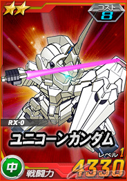 【右】「シナンジュ」に対し6倍の攻撃力を発揮する「★2 ユニコーンガンダム」