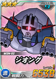 同機を倒した際に引くことができるチャンスガシャS、チャンスガシャ(超総力戦仕様)には、「★3 ジオング」、「★3 ガンダム試作一号機フルバーニアン」、「★3 ガンダム試作二号機」、「★3 ガンダムF91」を獲得できるチャンスがあるほか、エースユニットガシャには「シャア専用ザクII」に対し6倍の攻撃力を発揮する「★2 ガンダム」が追加される。