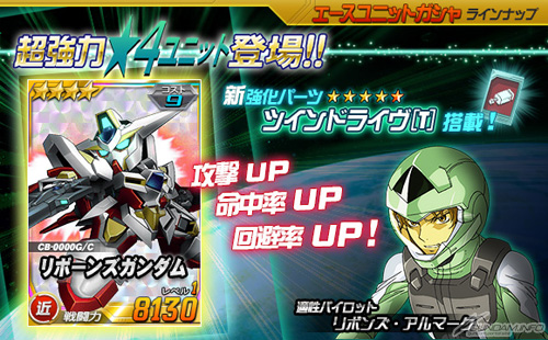 さらに本日より、エースユニットガシャに「★4 リボーンズガンダム」が登場。強化パーツ「ツインドライブ[T]」を搭載する強力な機体となっているので、ぜひとも手に入れよう。