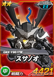 同機を倒した際に引くことができるチャンスガシャには、「★3 ガンダムエクシア」を獲得できるチャンスがあるほか、エースユニットガシャには「ダブルオーライザー」に対し6倍の攻撃力を発揮する「★2 スサノオ」が追加される。