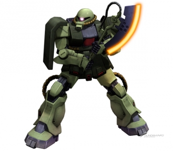 統合整備計画により再設計されたザクII。高い格闘能力と移動速度を備え、近接戦闘を得意とする。チャージすることで威力が増す主武装のチャージヒート・ホークにより、強力な一撃を繰り出すことができる。