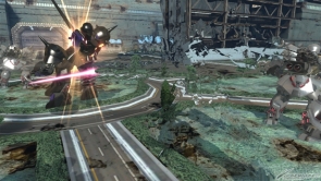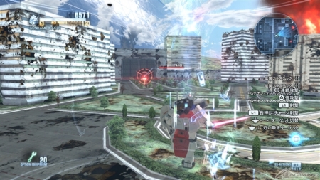 ▲「L1」でロックオン対象に高速射撃!連射攻撃で気持ち良さ抜群!「L1」を長押しすると、ライフルが合体するなど武器によっては特殊な攻撃に!