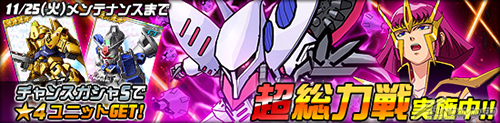 今回の総力戦では「ハマーン搭乗キュベレイ」が登場し、11月25日(火)までの期間中に任務を実行すると、まれに遭遇することがある。