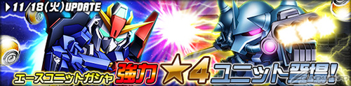 エースユニットガシャに「★4 Ζガンダム」、「★4 グフ・カスタム」、「★3 リック・ドム(アナベル・ガトー専用)」、「★3 ジム・スナイパーII」、「★3 ジム(ホワイト・ディンゴ仕様)」といった強力なユニットが多数登場する。