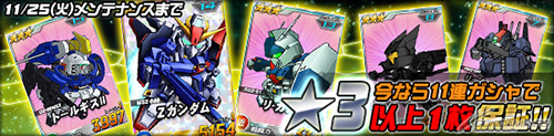 11連ガシャ★3ユニット1枚保証キャンペーン