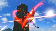 ▲特殊射撃武装「ヒートショーテル【投擲】」では、ヒートショーテルを2本同時に投擲して当たった敵をスタンさせる。