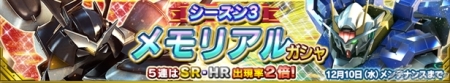 シーズン3に登場した人気カードがメインにラインナップされたスペシャルガシャ。パイロット、機体、サポートの混在ラインナップで構成されている。