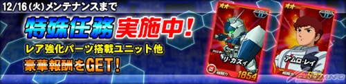 さらに、エースユニットガシャに「★4 クシャトリヤ」や「★3 ユニコーンガンダム(NT-D)」など強力なユニットが多数登場するほか、特殊任務「オペレーションチップ奪還作戦」など3つのイベントが同時にスタートした。