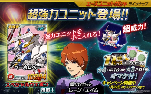 さらに、本日1月15日(木)よりスタートした「11連ガシャ★3 or ★4ハロおまけキャンペーン」は、1月22日(木)メンテナンス開始までの期間中に「11連エースユニットガシャ」を引くと、「★3」もしくは「★4」のハロ(近 or 中 or 遠)が1枚付いてくるというお得なキャンペーンだ。