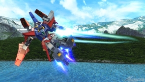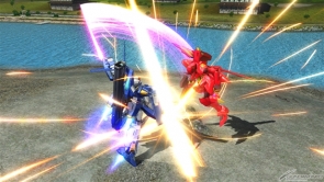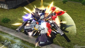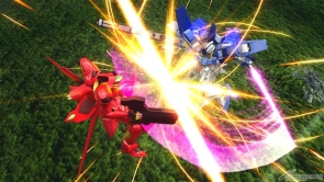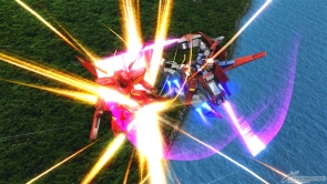 ▲バーストアタックは「僕がみんなを守るんだーッ!」。ノーマルでビームサーベルを用いた格闘攻撃、オービタルでシグマシスロングキャノンを用いた射撃攻撃を行った後、フォートレスのシグマシスキャノンを最大出力で照射する。