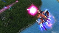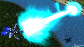 ▲特殊格闘武装「光波推進システム」ではレバー入力により内容が異なる高速移動を行う。レバーNでは自機頭上に向け急上昇、レバー前後左右では対応した方向へ直進する。