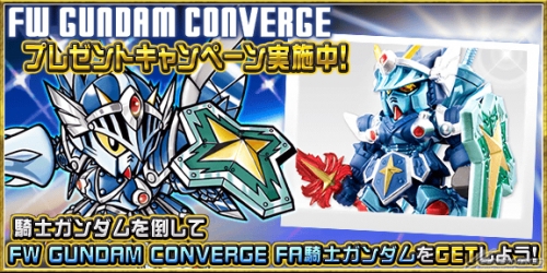 キャンペーン期間中は「騎士ガンダム」が登場するスペシャルエリアが開放されるほか、条件を満たすことで「FW GUNDAM CONVERGE」の商品が当たるプレゼントキャンペーンへの応募コードも獲得できる。