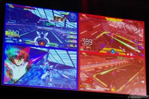 予選後に行われたステージアトラクションでは、まず始めに今回初参戦となった海外勢が紹介された。香港のゲームセンターで大勢のプレイヤーが「EXVS.MB」を取り囲んでいる映像なども上映され、本作が各地で遊ばれている様子をうかがうことができた。